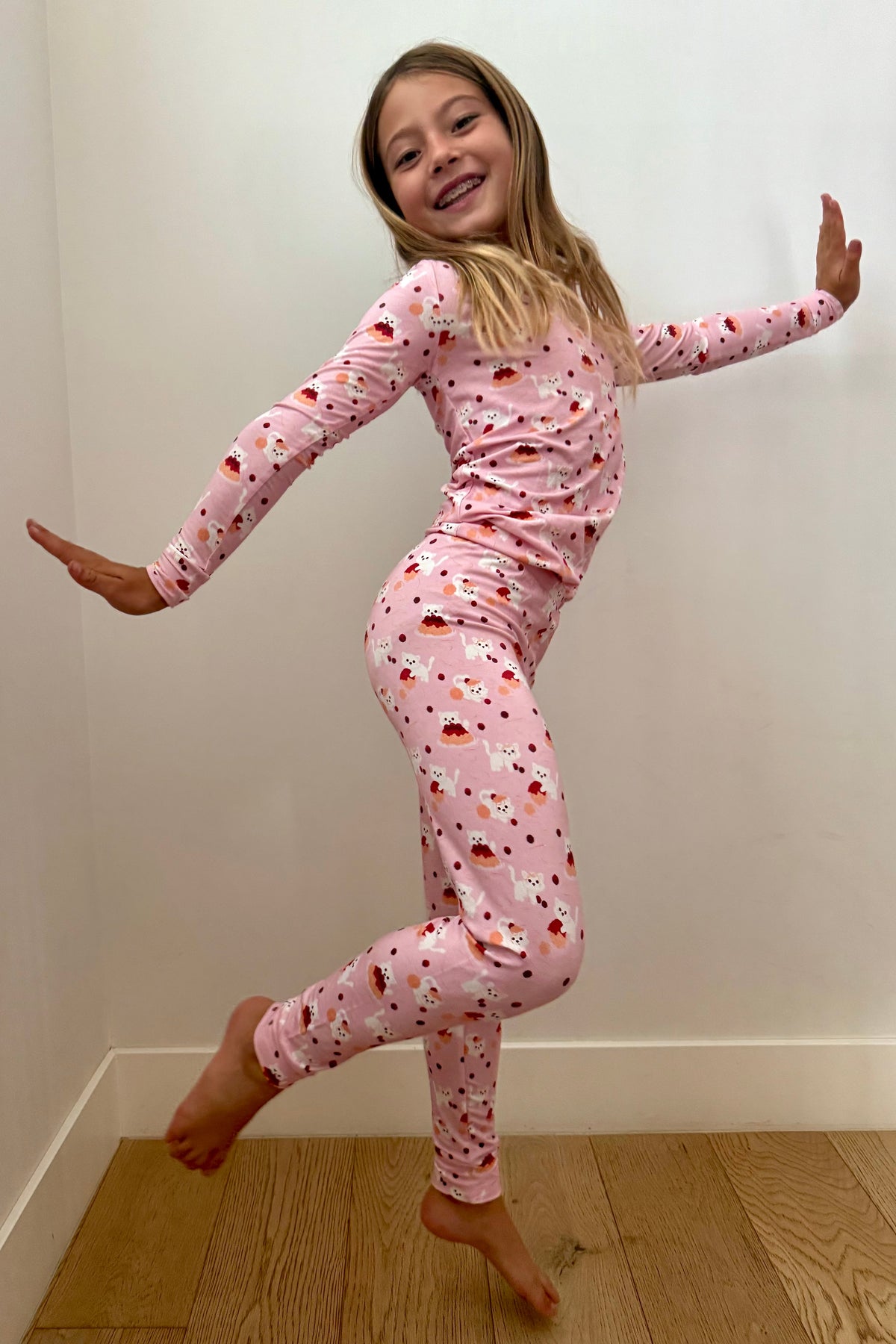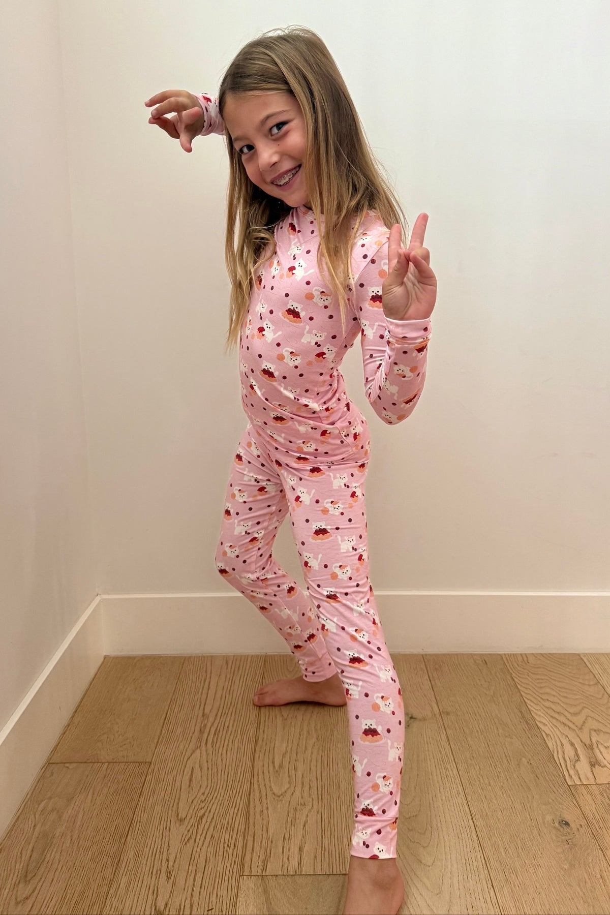 Meow and Meatballs Kids Long Sleeve top and Pant Pajama Set